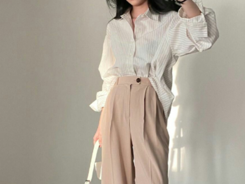 Kamu bisa mengoleksi celana ini untuk dijadikan bawahan outfit yang kasual. Seperti di atas, celana plisket bisa dipakai dengan atasan kaus putih dan open heels warna putih pula.