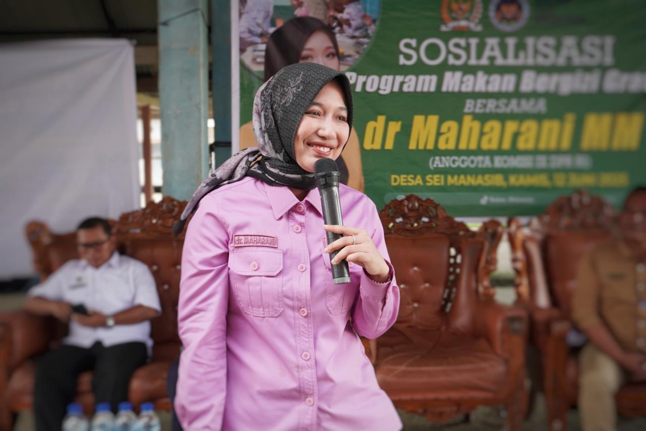 Hal itu disampaikan oleh anggota Komisi IX DPR RI Maharani saat sosialisasikan program MBG di Los Pasar Sei Manasib, Rokan Hlir Kamis, 12 Juni 2025. Ia menyampaikan bahwa program MBG merupakan investasi jangka panjang bangsa Indonesia dimasa depan.