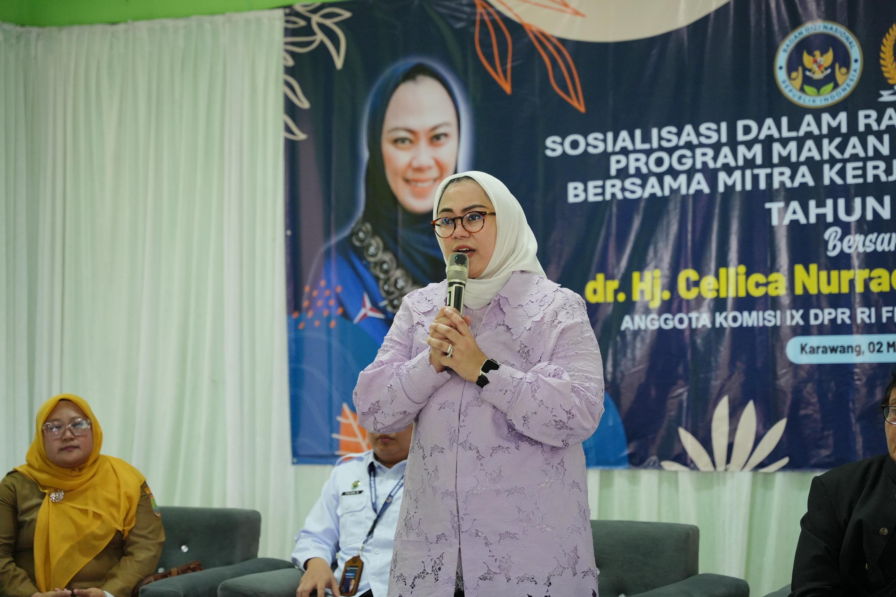 Dalam kesempatan tersebut, Anggota Komisi IX DPR RI, Cellica Nurrachadiana, menegaskan bahwa Program MBG merupakan langkah strategis pemerintah dalam meningkatkan kualitas sumber daya manusia Indonesia sejak dini.