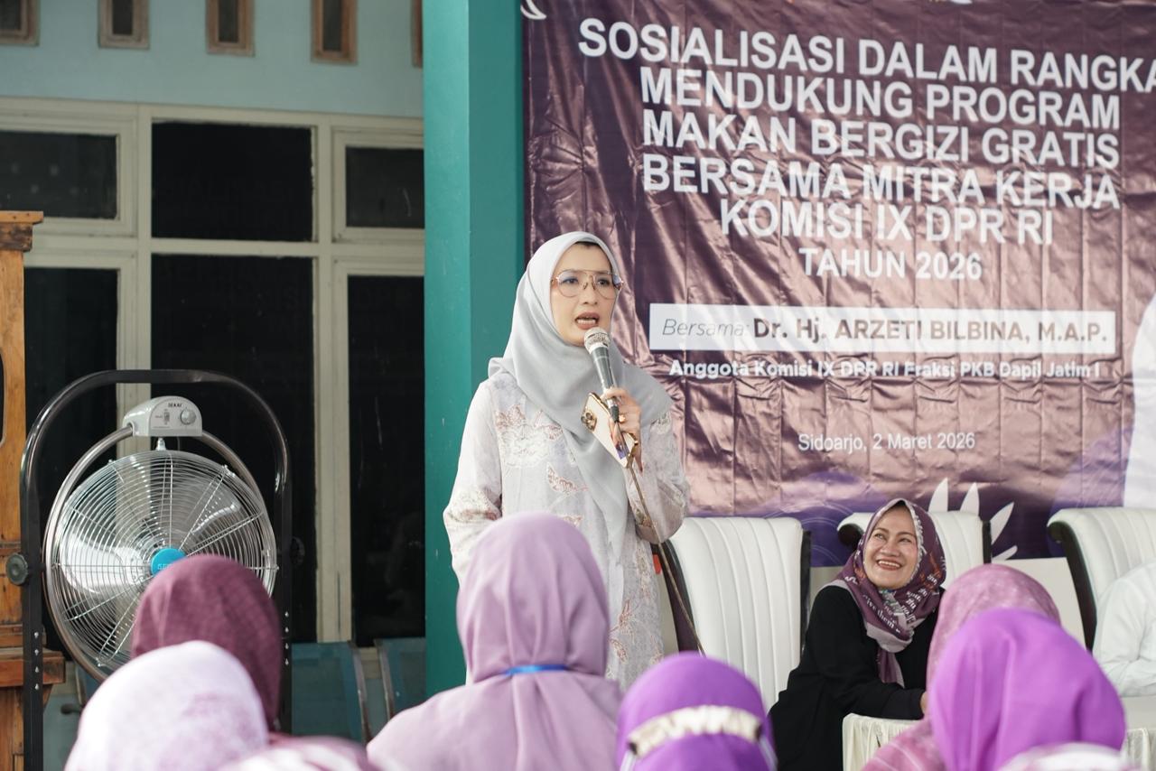 Sidoarjo, Jawa Timur (3/3) - Program Makan Bergizi Gratis (MBG) terus disosialisasikan oleh Komisi IX DPR RI bersama mitra Badan Gizi Nasional (BGN) kepada masyarakat sebagai bentuk komitmen pemerintah dalam meningkatkan kualitas gizi nasional. Kegiatan sosialisasi kali ini digelar di Gedung Yayasan Ar Rahman Rahim, Kludan, Tanggulangin Timur, Sidoarjo, Senin (2/3).