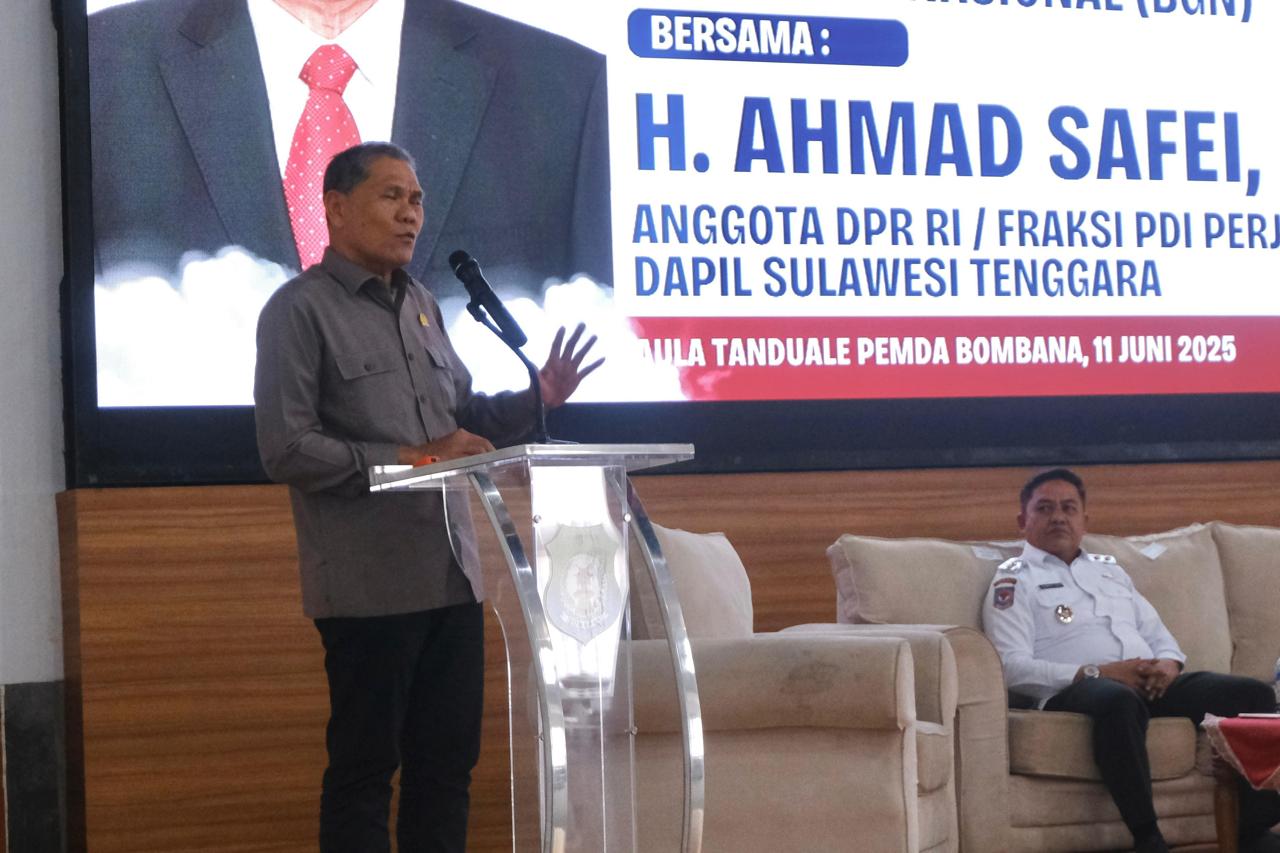 Dalam sosialisasi yang dilakukan di Bombana, anggota Komisi IX DPR RI Ahmad Safei menyampaikan bahwa BGN merupakan lembaga tunggal yang ditunjuk oleh pemerintah dalam mengatasi permsalahan gizi buruk di Indonesia.