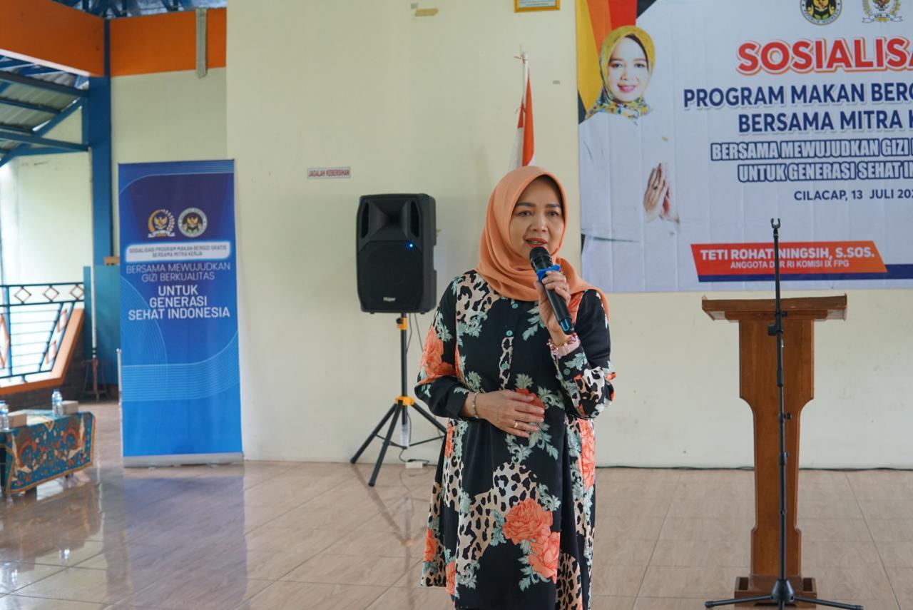 Anggota Komisi IX DPR RI Teti Rohatiningsih menegaskan komitmen pemerintah terhadap kelancaran program Makan Bergizi Gratis. Dengan melakukan sosialisasi ini, pemerintah terus mencari solusi agar makanan bergizi dapat diakses secara merata hingga ke pelosok.