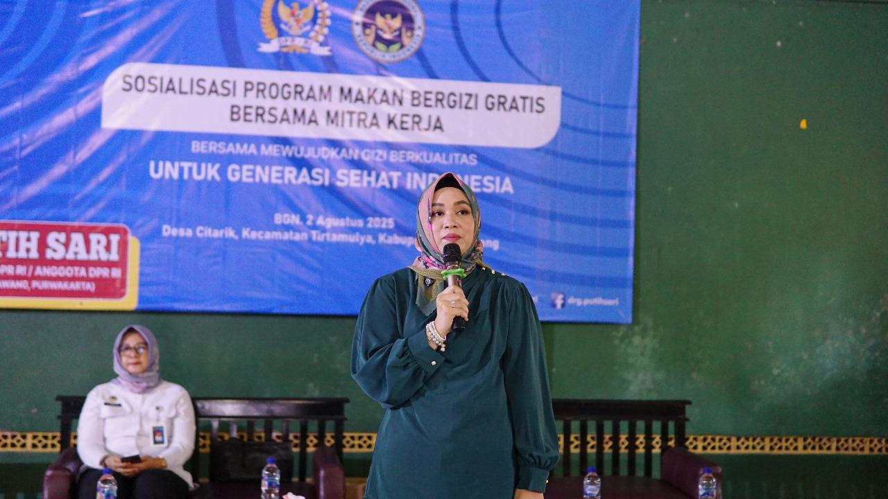 Hal tersebut disampaikan oleh anggota Komisi IX DPR RI Putih Sari dalam kegiatan sosialisasi MBG yang digelar bersama Badan Gizi Nasional (BGN) di Kecamatan Tirta Mulya, Kabupaten Karawang, Sabtu (2/8/2025).