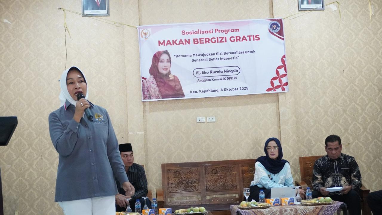 Kepahiang, Bengkulu (5/10) – Anggota Komisi IX DPR RI, Eko Kurnia Ningsih, menegaskan bahwa Program Makan Bergizi Gratis (MBG) adalah bentuk nyata hadirnya negara dalam menjamin hak anak untuk tumbuh sehat, cerdas, dan produktif. Hal itu disampaikan Eko Kurnia dalam kegiatan sosialisasi MBG yang digelar di Gedung Serba Guna Kuto Aur, Desa Tebat Monok, Kabupaten Kepahiang, pada Sabtu (4/10).