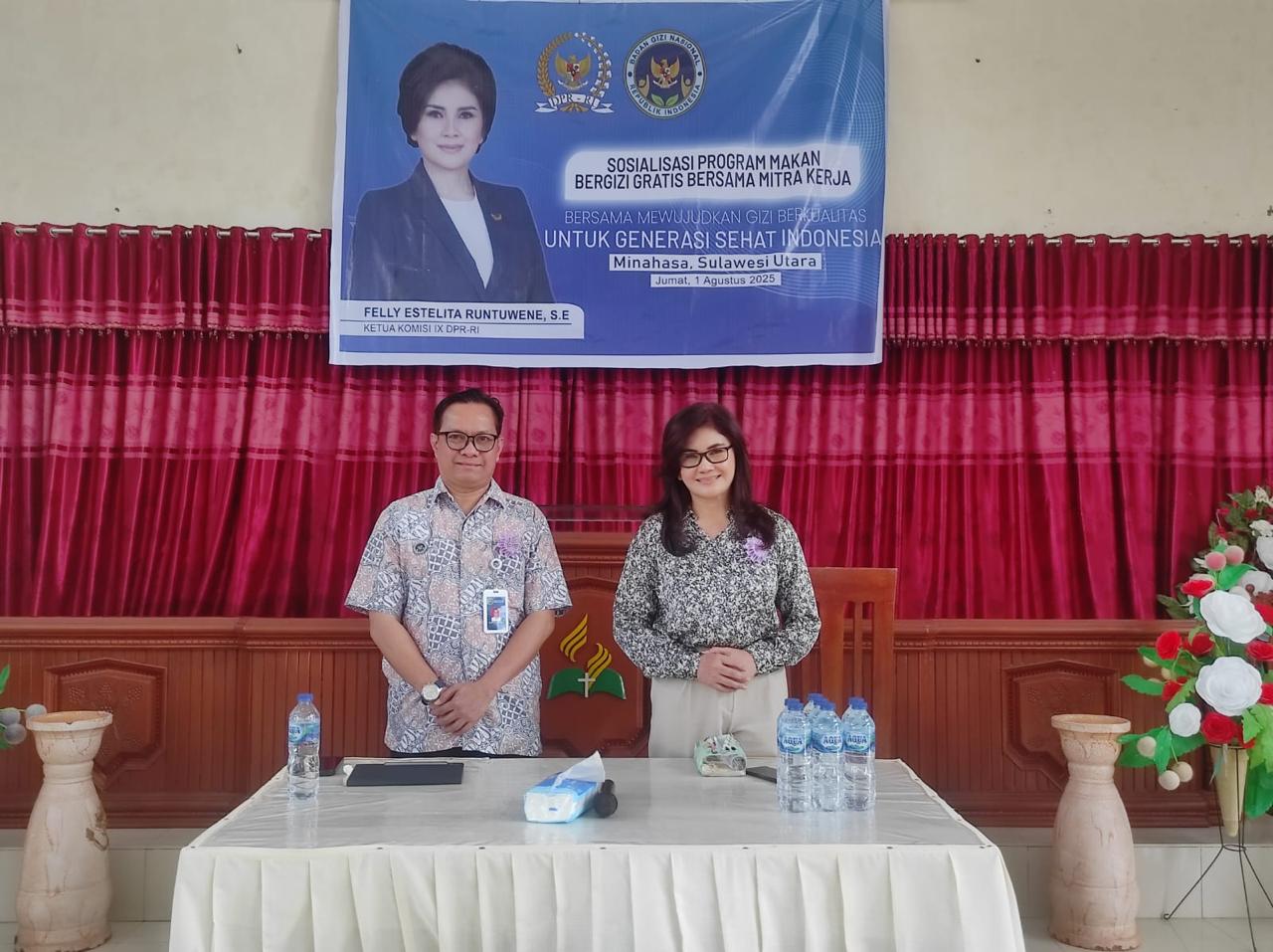 Hal itu disampaikan Felly Estelita saat sosialisasikan program MBG di Rumah Jamaat Taman Harapan Werot Tondano, pada Jumat, 1 Agustus 2025. Ketua Komisi IX DPR RI Felly Estelita berharap dengan dilakukannya sosialisasi ini para orang tua menjadi lebih memperhatikan terhadap pola makan anak-anaknya.