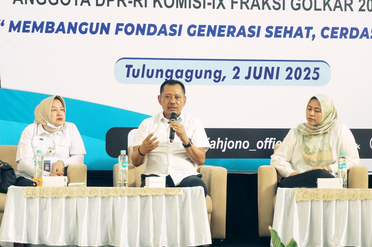 Tulungagung, Jawa Timur - Anggota Komisi IX DPR RI Heru Tjahjono menegaskan pemberian makanan bergizi dapat menekan tingginya kasus stunting dan malnutrisi khususnya yang terjadi di Tulungagung. Pemerintah akan menjamin standar gizi yang ditetapkan termasuk kebutuhan karbohidrat, protein, dan vitamin.
