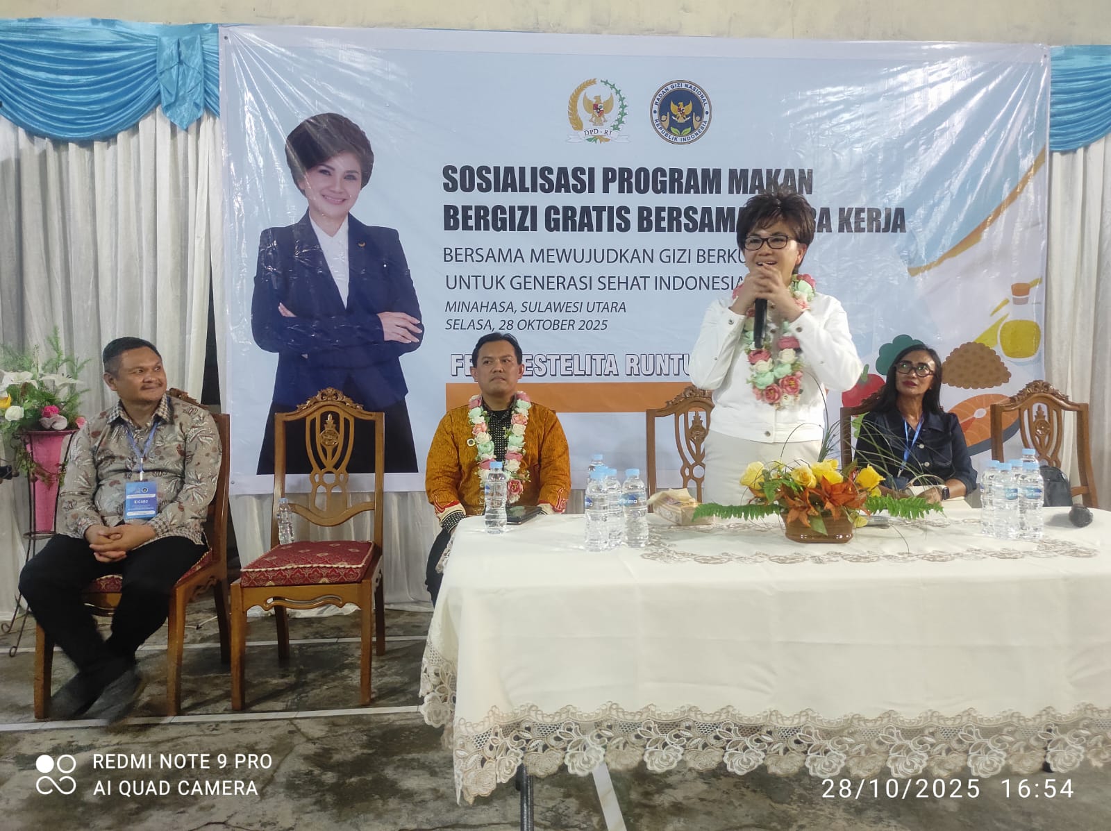 Minahasa. Sulawesi Utara (29/10) - , Ketua Komisi IX DPR RI, Felly Estelita Runtuwene, gencar sosialisasikan program Makan Bergizi Gratis (MBG). Sosialisasi yang hari ini digencarkan merupakan langkah awal pemerintah untuk mengedukasi masyrakat mengenai pentingnya menjalani pola makan hidup sehat sejak dini.
