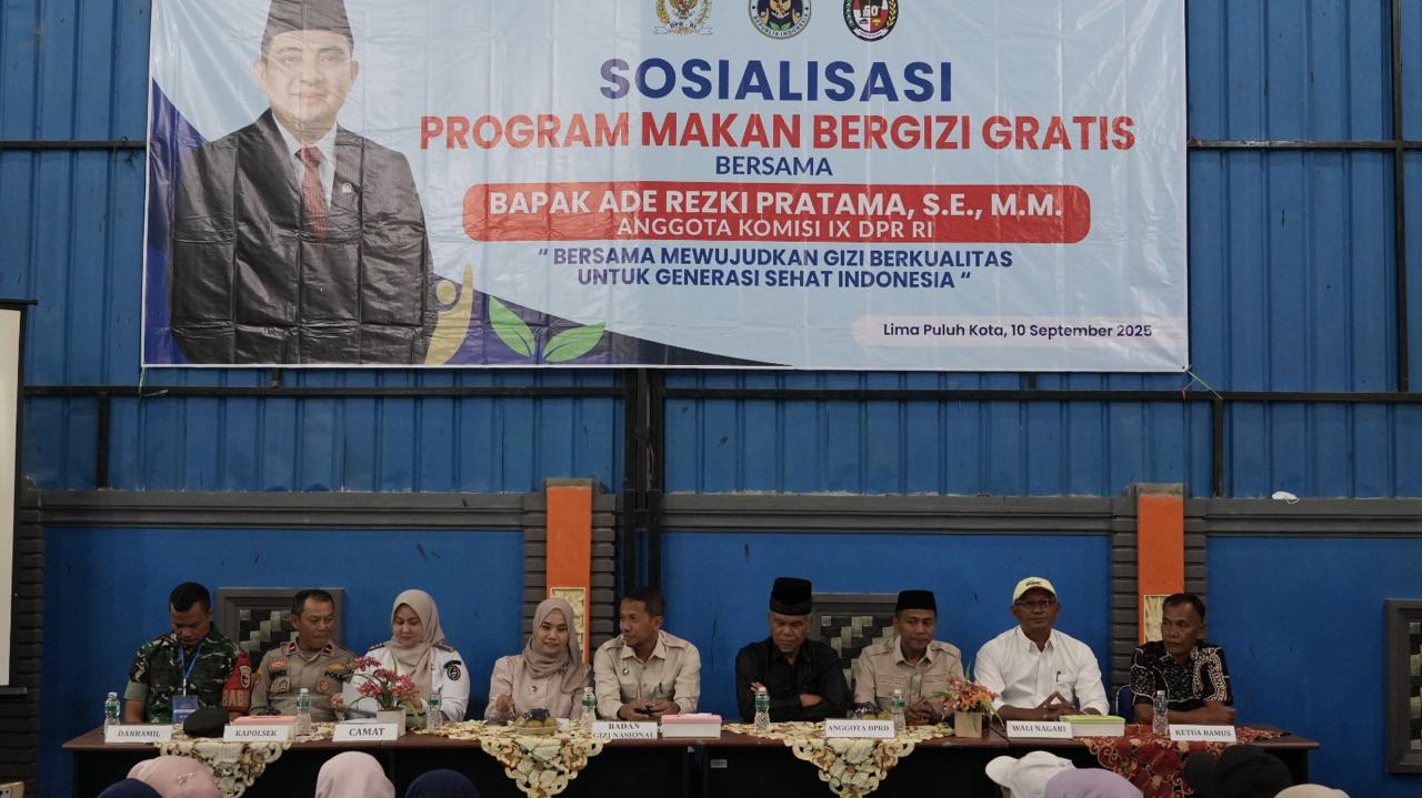 Sosialisasi program MBG kali ini bertempat di Kantor Kerapatan Adat Nagari Bawan, Kecamatan Ampek Nagari, Kabupaten Lima Puluh Kota pada Rabu, (10/9). Komisi IX DPR RI bersama mitra kerja Badan Gizi Nasional (BGN) menyampaikan pentingnya pemenuhan gizi bagi generasi muda Indonesia.