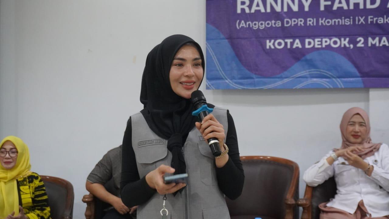 Depok, Jawa Barat (3/3) - Anggota Komisi IX DPR RI, Ranny Fahd Arafiq, kembali menggelar sosialisasi Program Makan Bergizi Gratis (MBG) bersama mitra kerja di Wisma Hijau, Kecamatan Cimanggis, Kota Depok, Jawa Barat, Senin (2/3). Kegiatan ini turut menghadirkan Tenaga Ahli DPR Fadhly serta Tenaga Ahli Deputi Promosi dan Kerja Sama Badan Gizi Nasional, Anyelir Puspa Kemala.