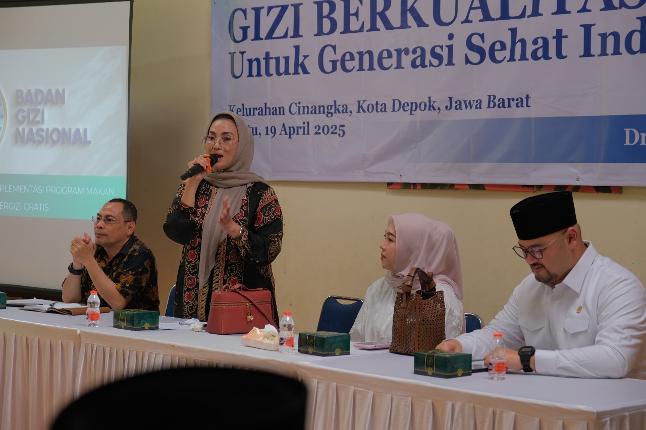 Depok, Jawa Barat – Program Makan Bergizi Gratis (MBG) akan mendorong perilaku anak akan menjalani pola hidup sehat. Dengan asupan gizi yang tercukupi akan melahirkan sumber daya manusia yang unggul dimasa mendatang. Hal ini disampaikan oleh Anggota Komisi IX DPR RI Lucy Kurniasari saat sosialisasikan program MBG Sabtu, 19 April 2025.