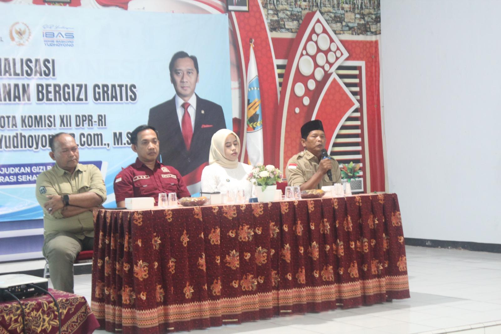 Dalam sambutannya, Arif Setia Budi yang hadir mewakili, Anggota Komisi XII DPR RI, Edhie Baskoro Yudhoyono, menegaskan bahwa Program MBG merupakan bentuk nyata komitmen pemerintah di bawah kepemimpinan Presiden Prabowo Subianto untuk memperkuat ketahanan gizi masyarakat.