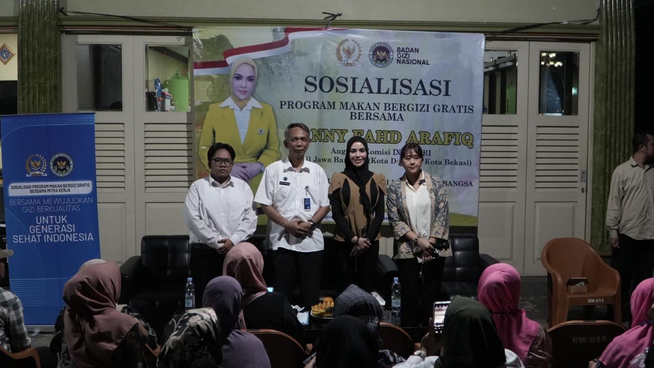 Warga Bekasi mendapat sosialisasi program Makan Bergizi Gratis (MBG) Senin, 10 Maret 2025. Sosialisasi ini dilakukan oleh DPR RI dan Badan Gizi Nasional (BGN) untuk mewujudkan generasi sehat Indonesia dimasa mendatang.