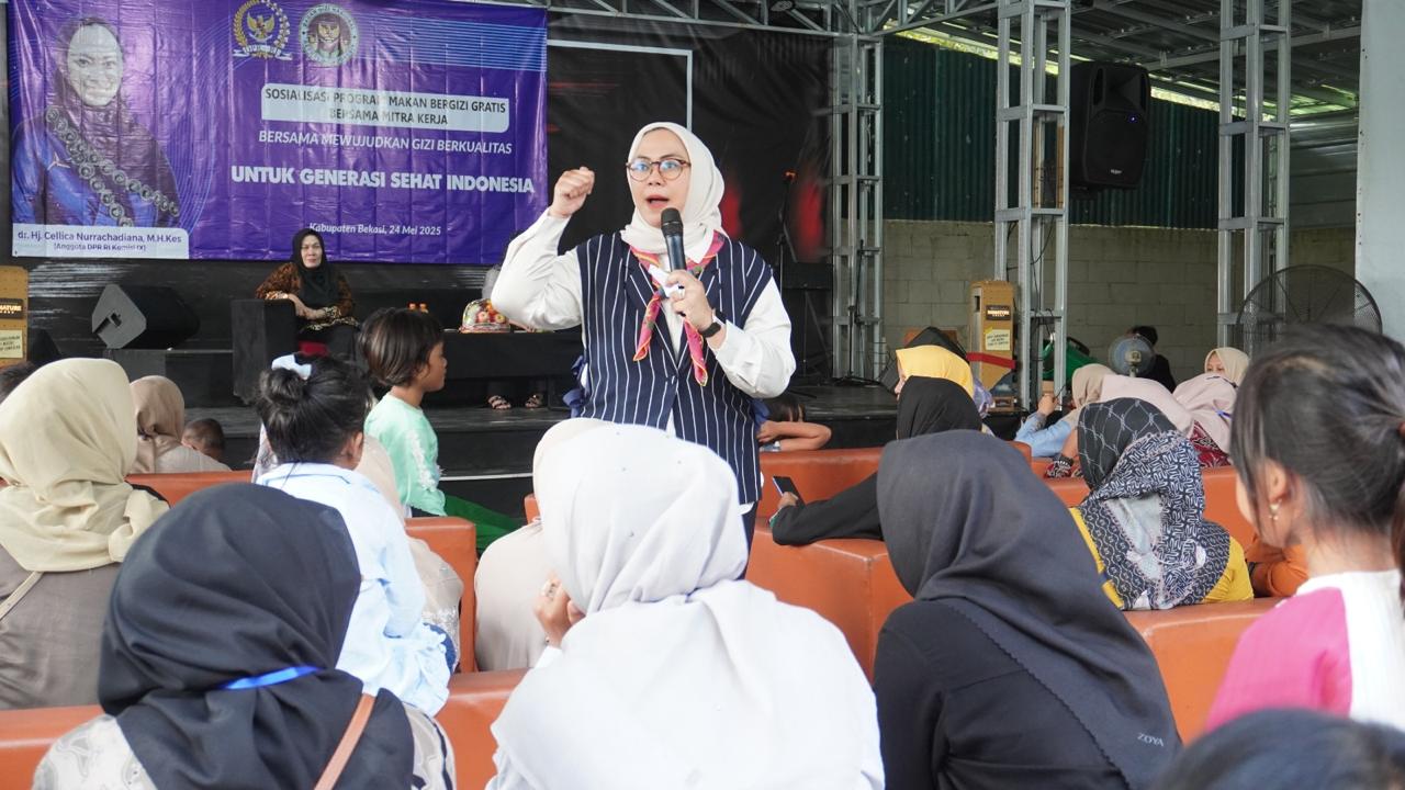 Hal itu disampaikan oleh Anggota Komisi IX DPR RI Cellica Nurachadianna saat sosialisasikan program MBG bersama warga Kabupaten Cikarang Sabtu, 24 Mei 2025. Sosialisasi MBG diinisiasi oleh DPR RI bersama mitra kerja Badan Gizi Nasional (BGN) untuk meningkatkan kesejahteraan masyarakat.