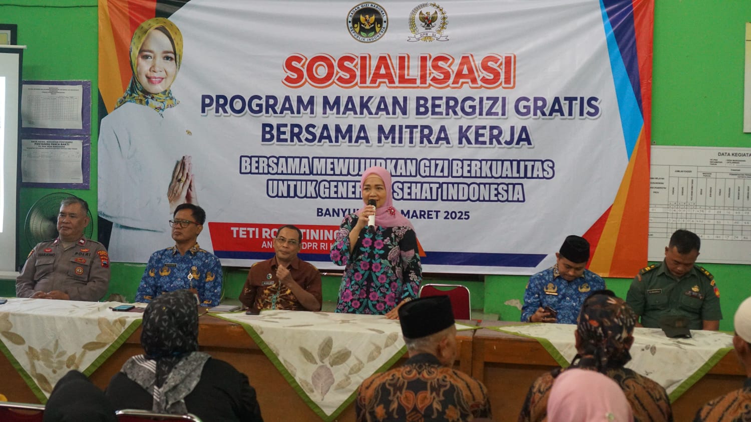 Banyumas, Jawa Tengah – Program Makan Bergizi Gratis (MBG) yang sudah dimulai pada tahun ini merupakan program yang sangat berharga untuk investasi negara dimasa depan. Hal itu disampaikan Anggota Komisi IX DPR RI Teti Rohatiningsih dalam sosialisasi program MBG Senin, 17 Maret 2025.