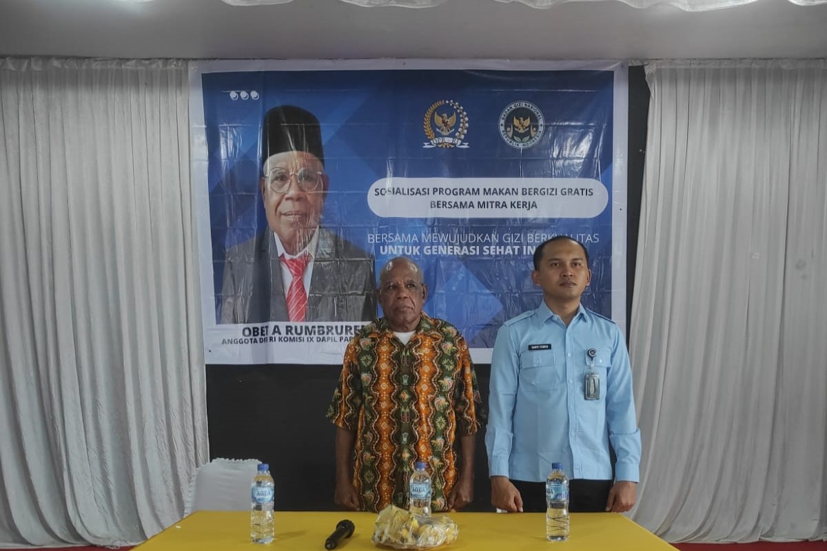 Sosialisasi program MBG yang dihadiri ratusan peserta yang merupakan warga Manokwari ini dihadiri oleh Anggota Komisi IX DPR RI, Obet A. Rumbruren, perwakilan Badan Gizi Nasional (BGN), Gusti Yudha Prasetya, serta tokoh masyarakat setempat.