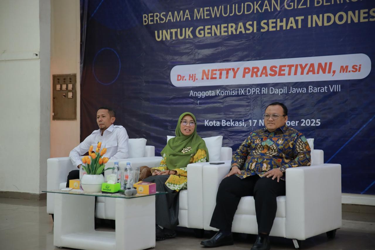 Sosialisasi program MBG ini bertempat di Graha Sativa, Komplek BULOG 1, Pondok Melati, Bekasi, pada Senin, (17/11). Kegiatan ini menghadirkan tiga narasumber utama, yaitu Anggota Komisi IX DPR RI, Netty Prasetiyani, Anggota Komisi XI DPR RI, Muhammad Kholid, serta Tenaga Ahli Direktorat Promosi dan Edukasi Gizi Badan Gizi Nasional (BGN), Teguh Supangardi.
