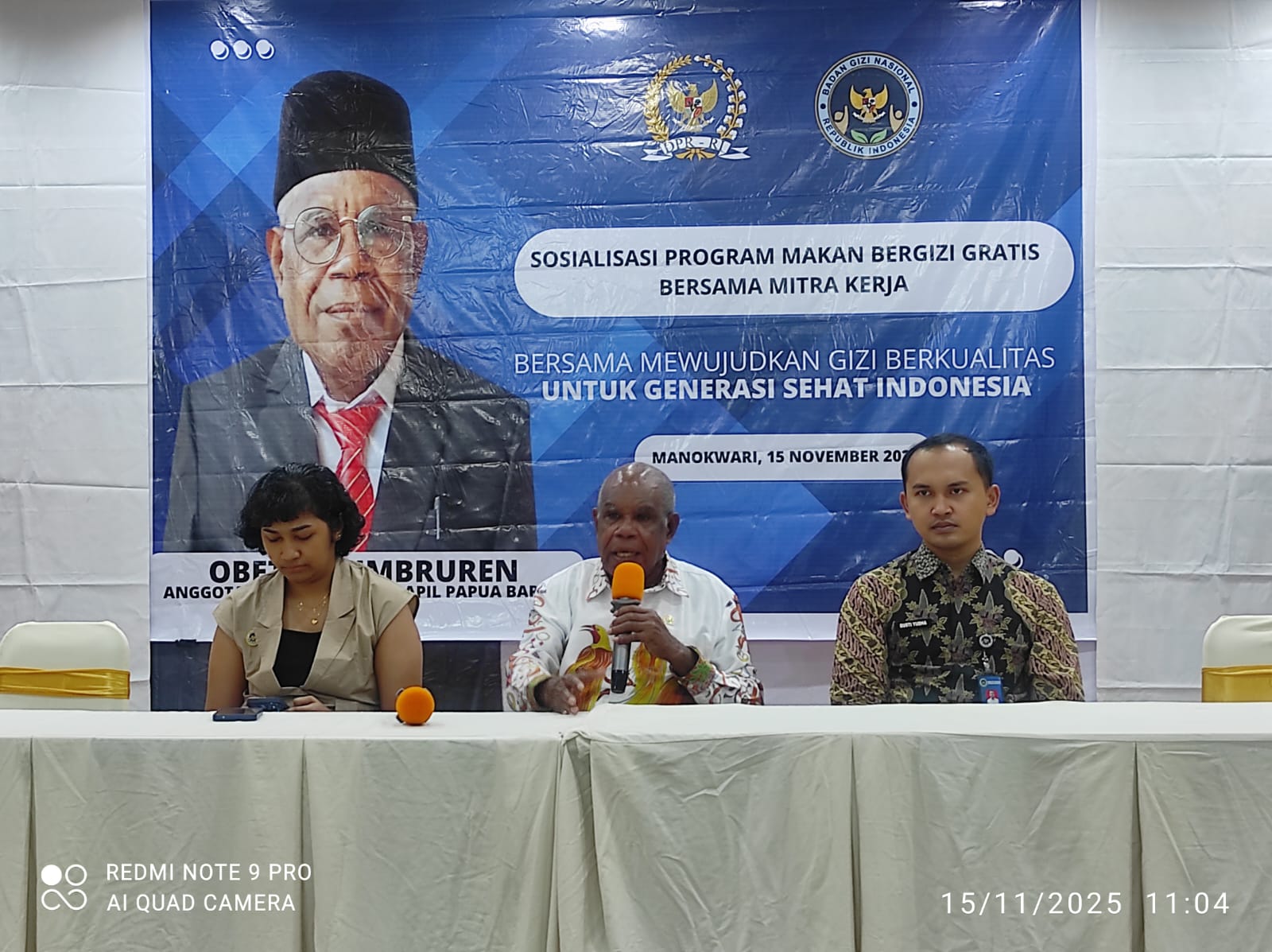 Kegiatan sosialisasi dengan mengangkat tema bersma mewujudkan generasi sehat Indonesia ini dihadiri oleh Anggota Komisi IX DPR RI Obet A. Rumbruren, perwakilan BGN Gusti Yudha Prasetya, serta Kepala Regional SPPG Papua Barat Erika Vionita. Sosialisasi ini diharapkan menjadi momentum untuk membawa masyarakat lebih pedulu terhadap asupan gizi sejak dini.