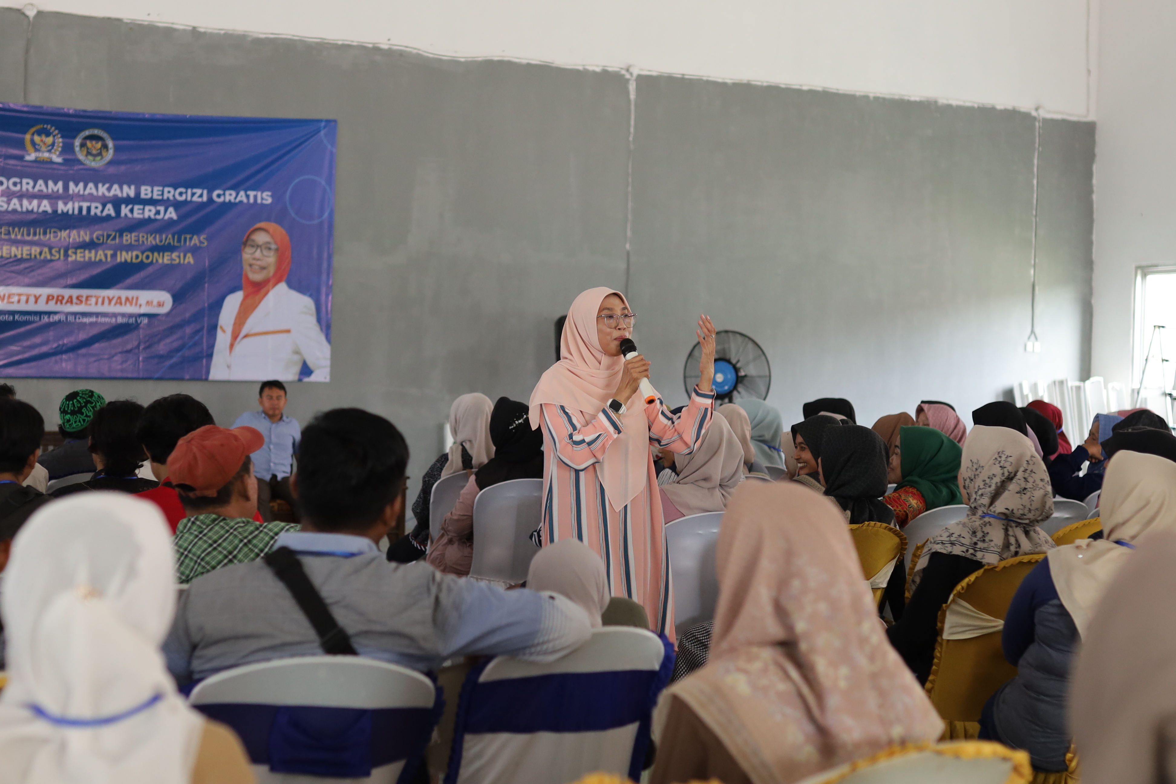 Kegiatan sosialisasi program MBG di Gedung Larasati, Desa Suci, Kec. Mundu, Cirebon, pada Sabtu (29/11) ini dihadiri oleh Anggota Komisi IX DPR RI, Anggota DPRD Cirebon, Ade Irawan, Tenaga Ahli Direktorat Promosi dan Edukasi Gizi Badan Gizi Nasional (BGN), Teguh Supangardi, serta ratusan peserta yang merupakan warga setempat.