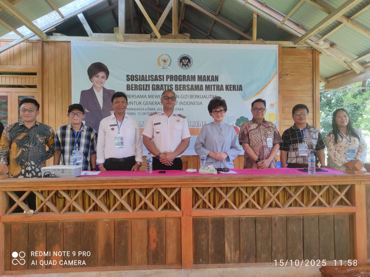 Sosialisasi program MBG ini digelar di Rumah Jamaat Teep, Kecamatan Talawaan, Minahasa Utara pada Rabu, (15/10). Acara ini dihadiri oleh Ketua Komisi IX DPR RI, Felly Estelita Runtuwene, Direktur Direktorat Promosi dan Edukasi Gizi, BGN Gunalan, Camat Talawaan, Alexander Warbung, serta tokoh masyarakat setempat.