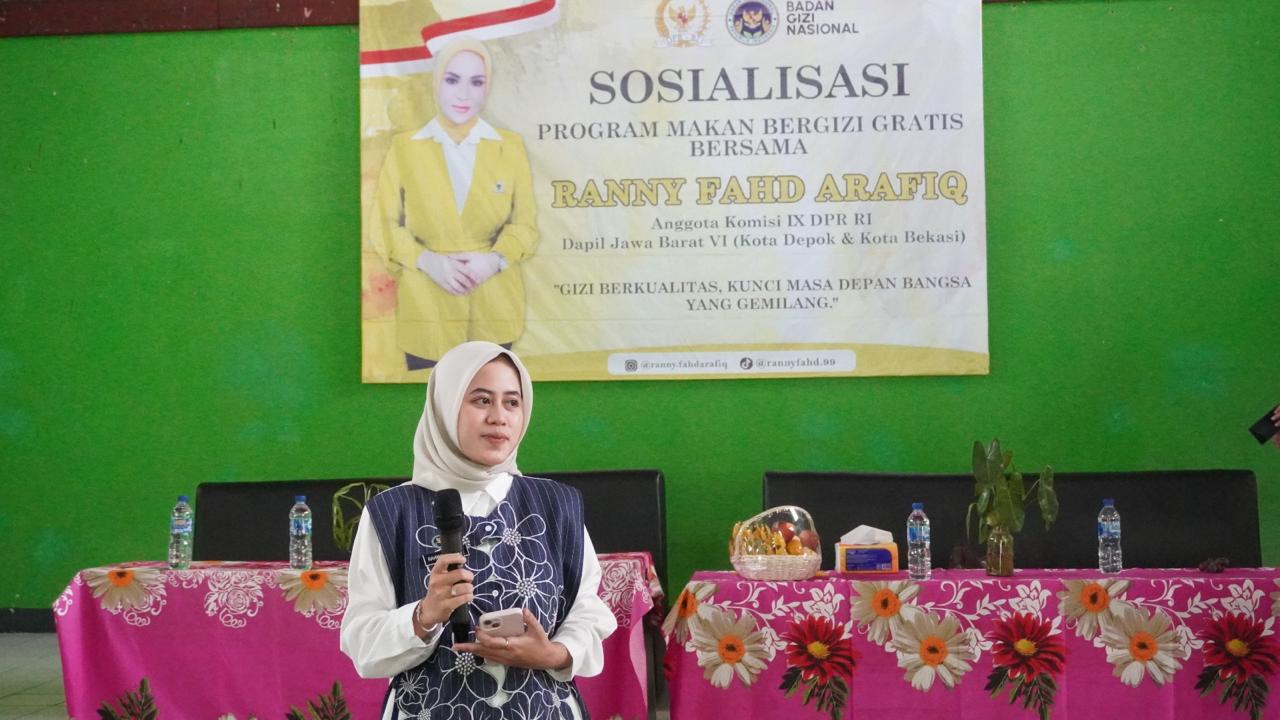 Bekasi, Jawa Barat (09/10) – Anggota Komisi IX DPR RI, Ranny Fahd A. Rafiq, menegaskan komitmennya dalam memperjuangkan hak rakyat atas gizi yang layak melalui Program Makan Bergizi Gratis (MBG). Hal itu disampaikannya dalam sosialisasi yang digelar di Gedung Serbaguna Bukit Kencana 1, Pondok Gede, Kota Bekasi pada Rabu. (8/10).