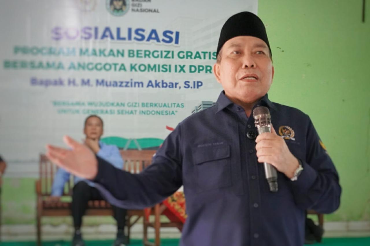 Anggota Komisi IX DPR RI, Muazzim Akbar dalam sosialisasi program MBG bersama warga Kacamatan Sikur Kamis 1 Mei 2025 memberikan pemahaman terkait dapur sehat yang nantinya akan berada di wilayah ini.