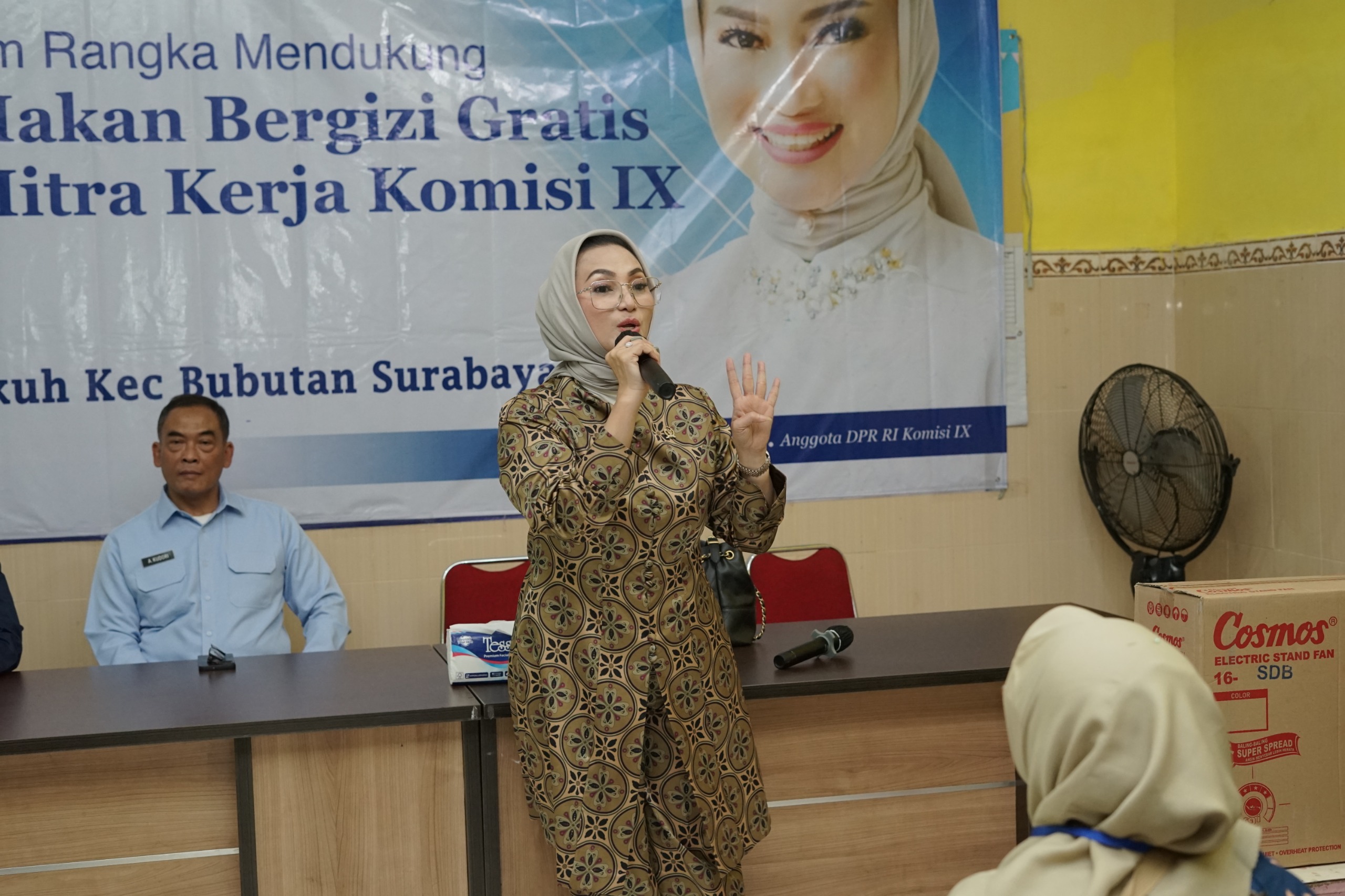 Surabaya, Jawa Timur (8/3) - Sosialisasi Program Makan Bergizi Gratis (MBG) kembali digelar untuk meningkatkan pemahaman masyarakat mengenai pentingnya pemenuhan gizi yang seimbang. Kegiatan ini dilaksanakan di Balai RW 7 Kalibutuh, Bubutan, Surabaya pada Sabtu, (7/3). Agenda sosialisasi ini dihadiri oleh Anggota Komisi IX DPR RI, Lucy Kurniasari, Anggota DPRD Surabaya Mochammad Machmud, serta perwakilan Badan Gizi Nasional, Achmad Kudori.