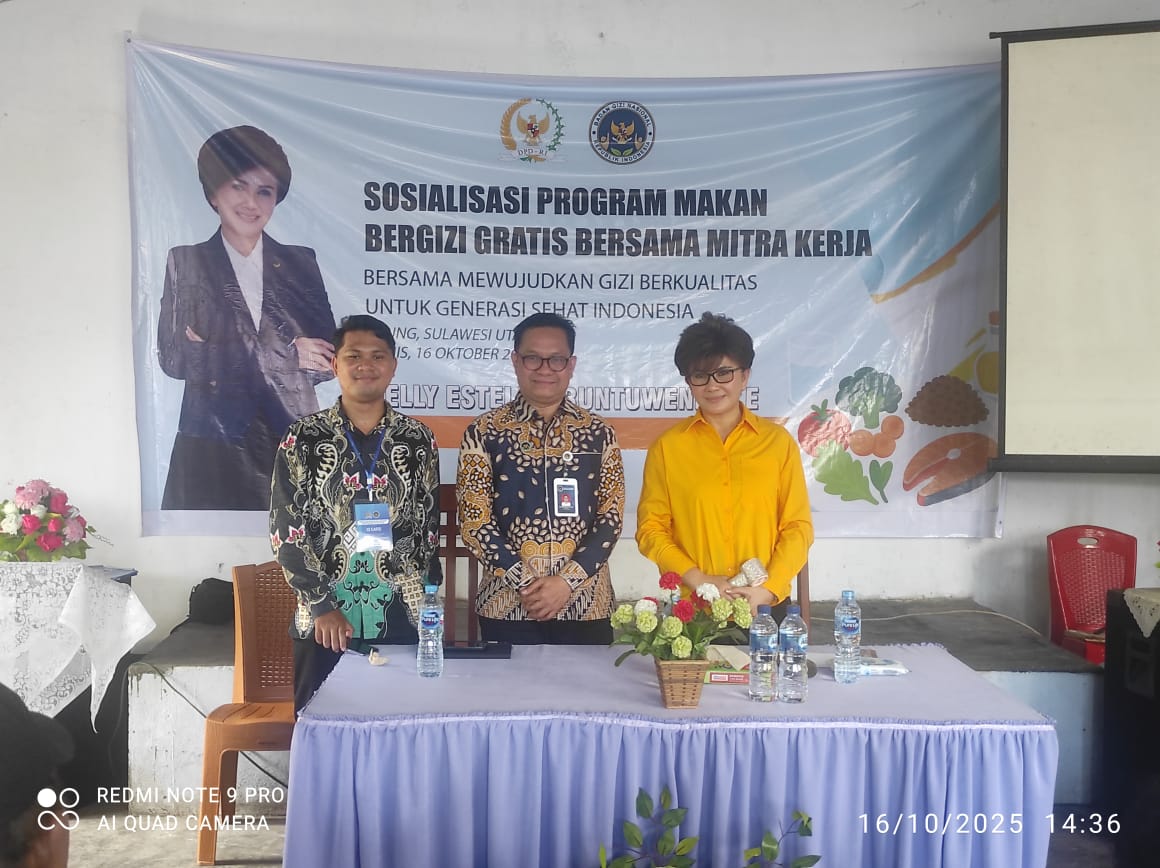 Sosialisasi program MBG kali ini bertempat di Gereja GMAHK Smirna Winenet Nembo, Bitung, pada Kamis (16/10). Acara yang dimulai pada pukul 13.00 WIB itu dihadiri oleh Ketua Komisi IX DPR RI, Felly Estelita Runtuwene, Direktur Direktorat Promosi dan Edukasi Gizi, BGN, Gunalan, serta tokoh masyarakat setempat.