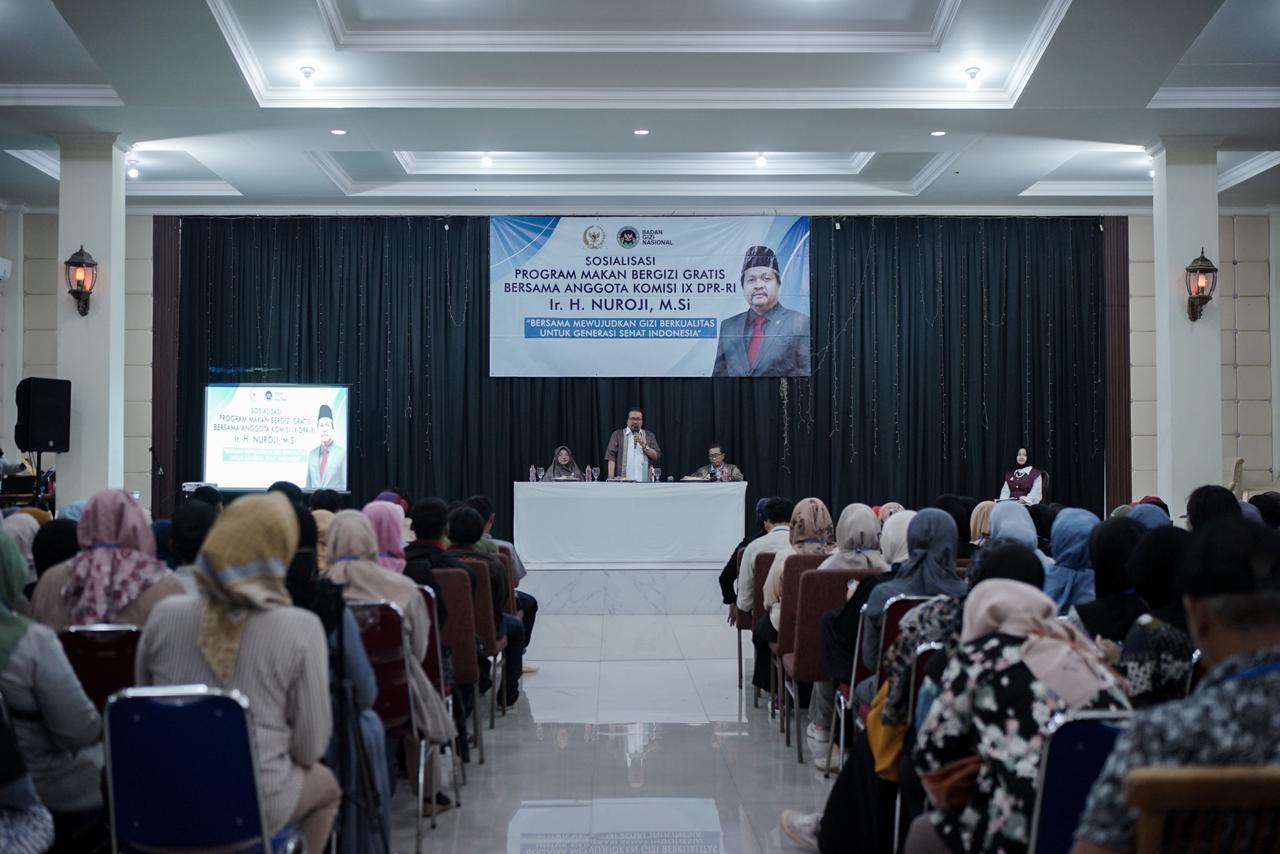 Kegiatan sosialisasi ini digelar di Gedung The Castle, Depok, Rabu (29/10). Acara sosialisasi ini dibuka langsung oleh Anggota Komisi IX DPR RI, Nuroji, yang menegaskan bahwa program ini aman dan layak dikonsumsi, sekaligus menjadi bagian dari langkah strategis menuju Indonesia Emas 2045. Nuroji menepis berbagai isu negatif yang beredar mengenai keamanan makanan dalam program MBG.