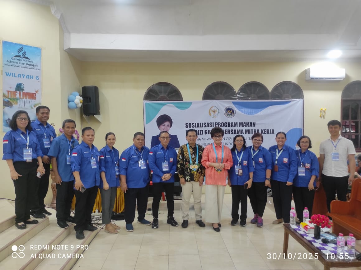 DPR RI bersama BGN menggelar sosialisasi kali ini di Sekolah Advent Kairagi, Kecamatan Tikala, Kota Manado, pada Kamis, (30/10). Kegiatan ini dihadiri langusng oleh Ketua Komisi IX DPR RI, Felly Estelita Runtuwene, Tenaga Ahli Komunikasi dan Hubungan Masyarakat BGN, Abdullah Kamil, serta Kepala Sekolah SD SMP Advent Kairagi, Wolter Terok.