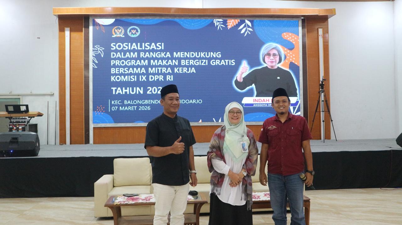 Sidoarjo, Jawa Timur (8/3) - Anggota Komisi IX DPR RI, Indah Kurniawati, mengajak masyarakat untuk ikut mengawal pelaksanaan Program Makan Bergizi Gratis (MBG) agar berjalan tepat sasaran dan memberi manfaat nyata bagi masyarakat. Hal tersebut disampaikannya dalam kegiatan sosialisasi program MBG di Gedung Serbaguna PT. Karya Bintang Mandiri, Kabupaten Sidoarjo, Jawa Timur, Selasa (7/3).