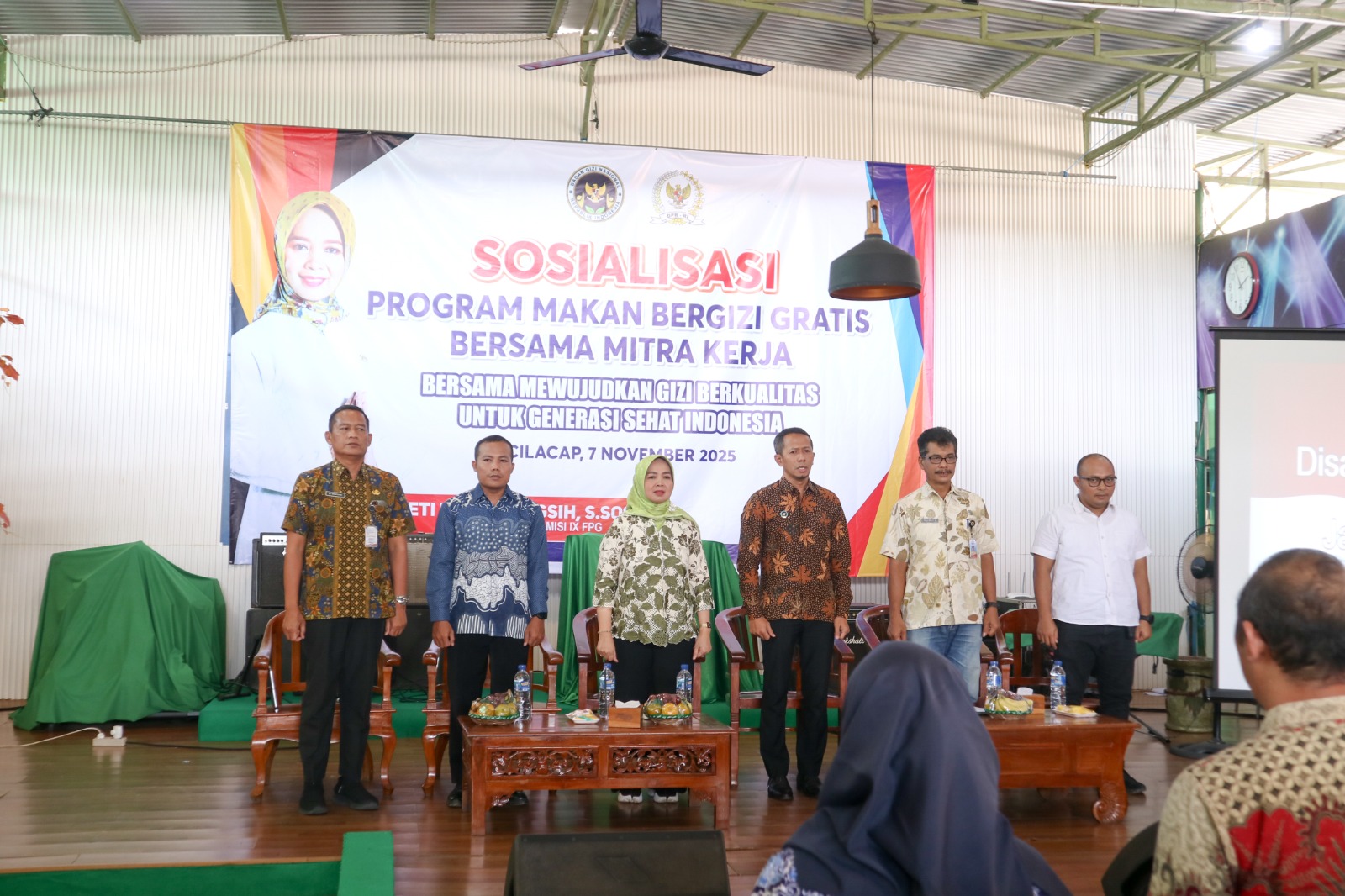 Sosialisasi dengan mengangkat tema bersama mewujudkan generasi sehat Indonesia ini dihadiri oleh Anggota Komisi IX DPR RI, Teti Rohatiningsih, Kepala SPPG Kabupaten Cilacap, Farizal Surno Suwito, serta Tenaga Ahli Direktorat Promosi Badan Gizi Nasional, Teguh Suparngadi.