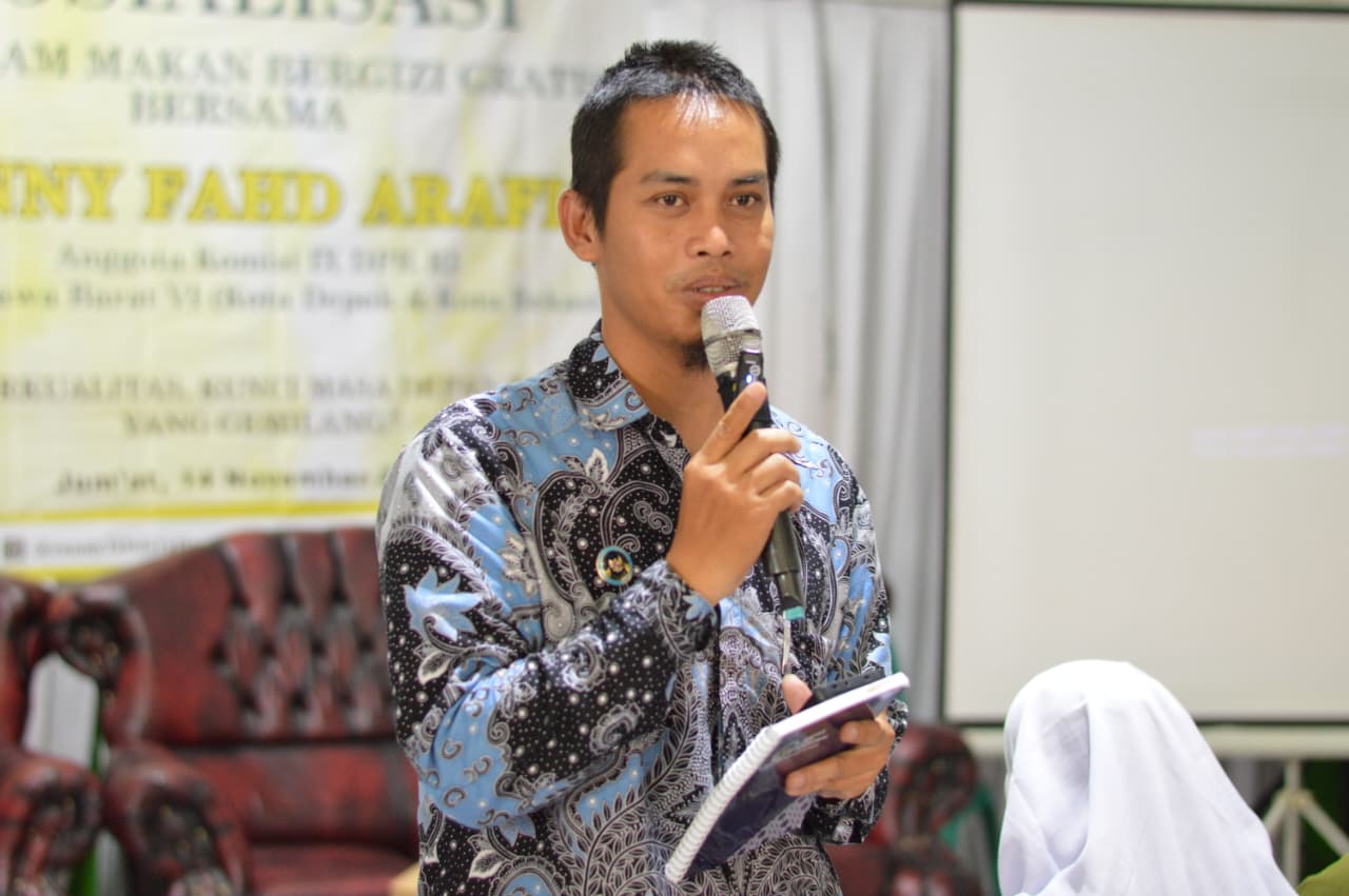Depok, Jawa Barat (16/11) - Sosialisasi Program Makan Bergizi Gratis (MBG) kembali digelar di Jawa Barat sebagai bagian dari upaya pemerintah memperluas pemahaman masyarakat mengenai pentingnya pemenuhan gizi seimbang. Kegiatan sosialisasi program MBG ini menghadirkan Anggota Komisi IX DPR RI, Ranny Fahd Arafiq bersama Tenaga Ahli DPR RI, Fadhly, serta ratusan peserta dari masyarakat setempat yang hadir di Aula Hidayatul Muttaqin, Depok, pada Jumat, (14/11).