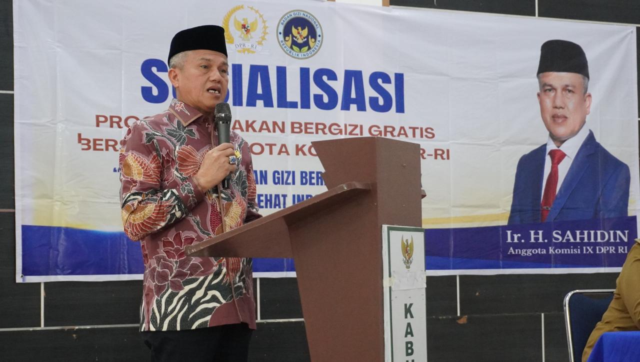 Kampar, Riau - Anggota Komisi IX DPR RI Sahidin menegaskan bahwa dirinya akan berkomitmen penuh untuk mendukung program Makan Bergizi Gratis (MBG) menuju generasi bangsa Indonesia yang berkualitas dan berdaya saing glbal. Hal itu ia sampaikan saat sosialisasikan program MBG di Gedung Mahligai Bungsu, Bangkinang, Kabupaten Kampar Selasa, 3 Juni 2025.