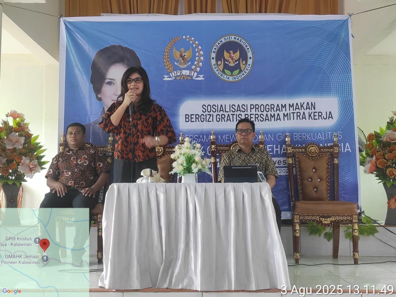 Hal itu disampaikan Ketua Komisi IX DPR RI Felly Estelita saat sosialisaskan program MBG di Rumah Jamaat Kinaloesan pada Sabtu, 2 Agustus 2025. Dalam kesempatannya, ia berpesan kepada masyarakat untuk mendukung program strategis nasional MBG untuk mewujudkan generasi sehat Indonesia.