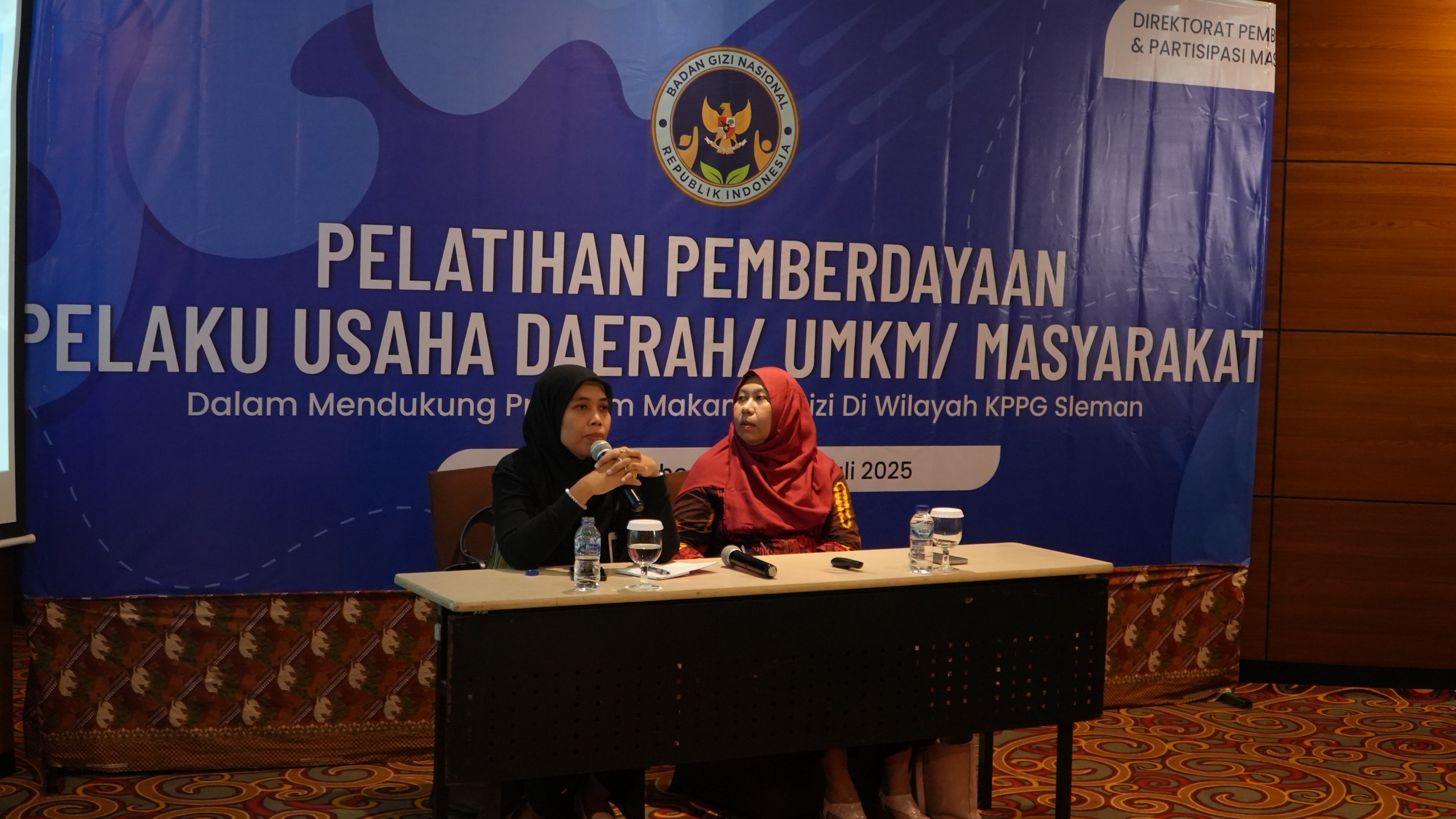 Sosialisasi kepada para pelaku usaha Yogyakarta ini dibuka oleh perwakilan Badan Gizi Nasional (BGN) Rima Nurisa Brahmani, Kesehatan Masyarakat Punik Mumpuni Wijayanti, dan Titik Susilowati.