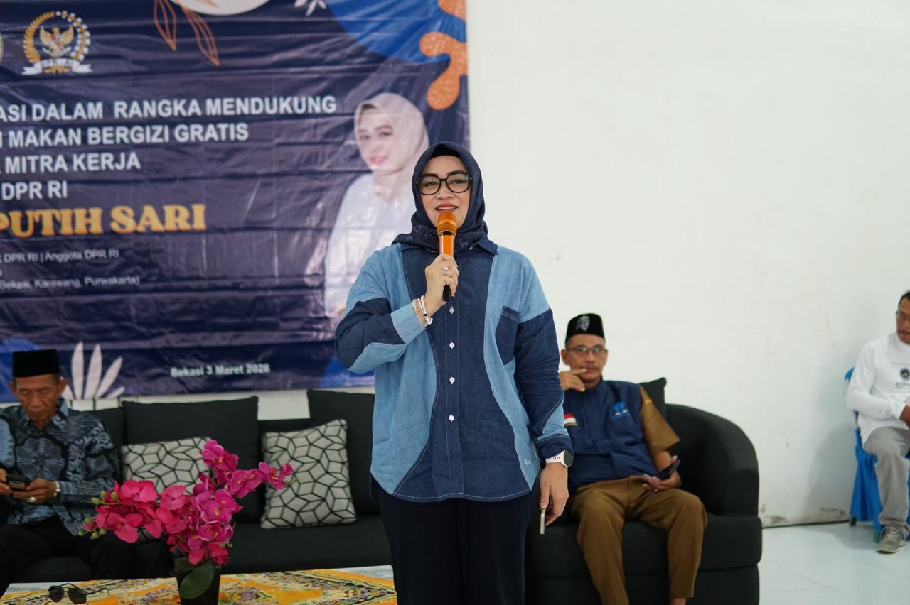 Bekasi, Jawa Barat (4/3) - Anggota DPR RI sekaligus Wakil Ketua Komisi IX, Putih Sari, melaksanakan kegiatan sosialisasi dan penguatan Program Makan Bergizi Gratis (MBG) di Gedung PGRI Kecamatan Tambun Utara, Kabupaten Bekasi, Jawa Barat, Selasa (3/3).