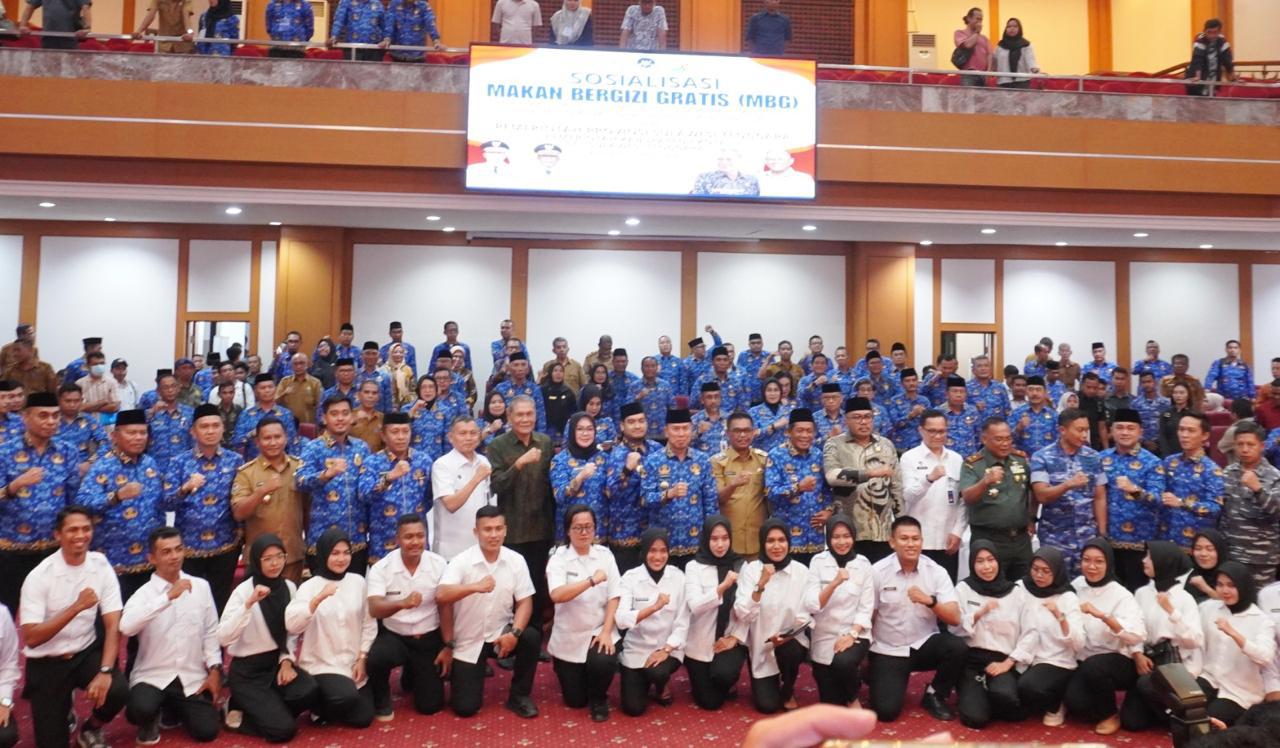Acara sosialisasi program MBG dihadiri oleh Anggota Komisi IX DPR RI Ahmad Safei, Gubernur Sulawesi Tenggara Andi Sumangerukka, dan perwakilan Badan Gizi Nasional Saworno, Gunalan, dan Dedi Suprijadi.